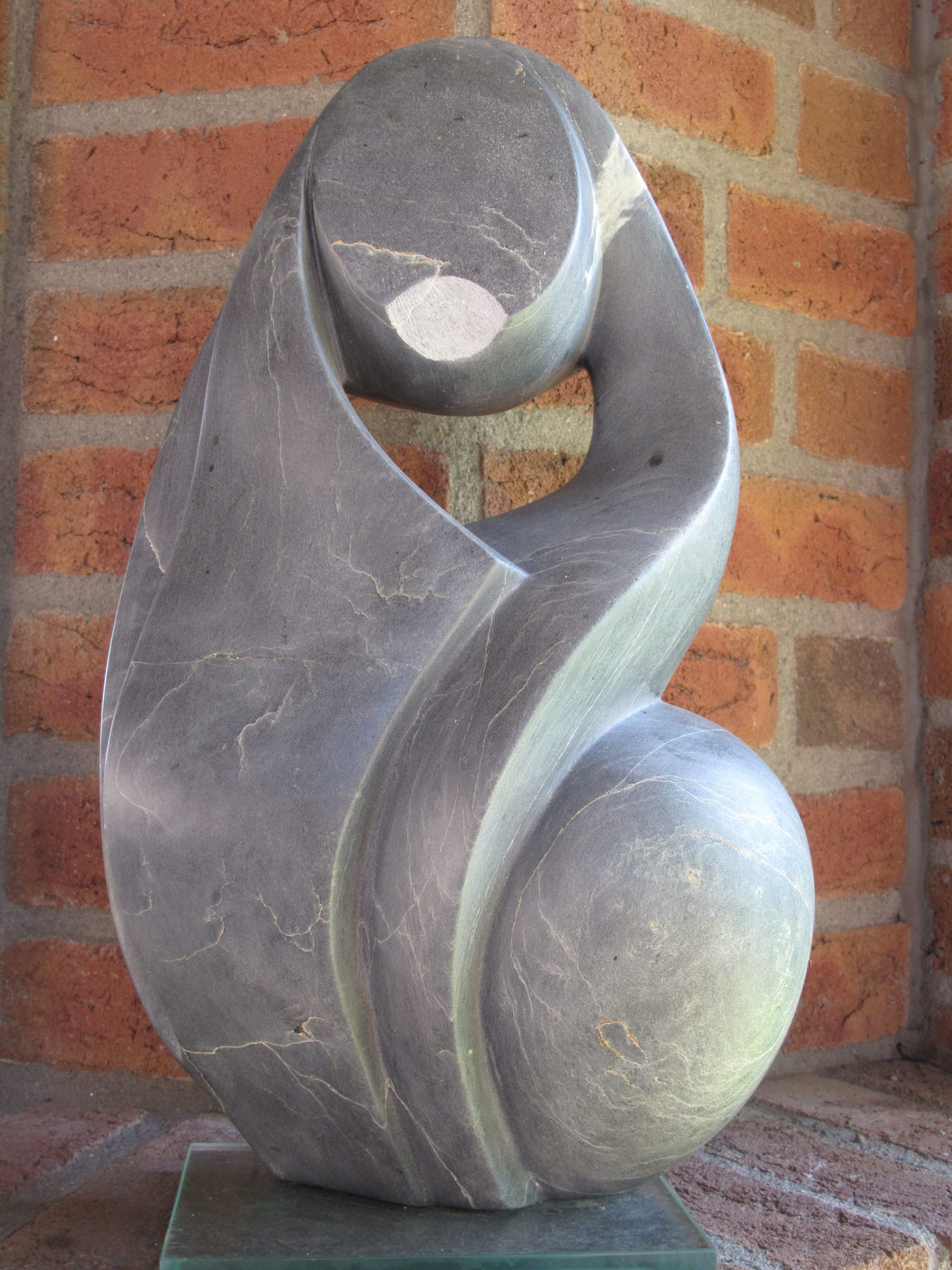 Unusual shape of a pregnant woman in dark soapstone Key Features:   Suitable only  for indoor environments.