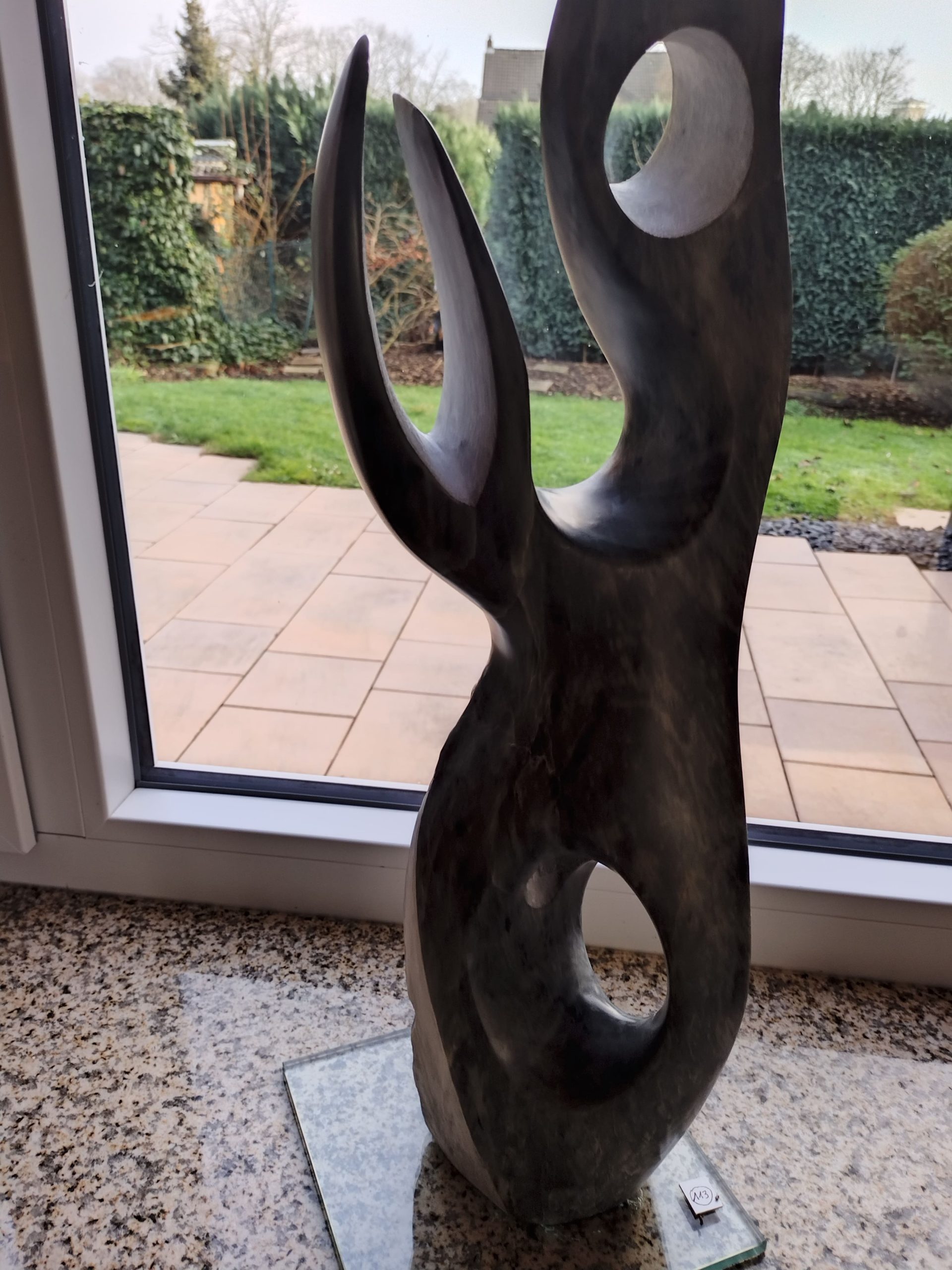 Abstract figure with interesting and harmoniously shaped views Key Features: dark soapstone Suitable only for indoor environments.